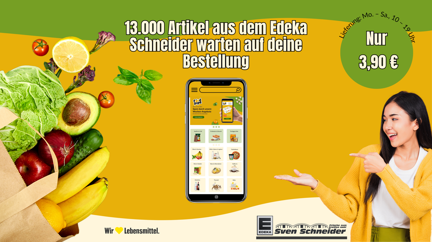 Bestelle Lebensmittel bequem von zu Hause aus mit foodpipe und Edeka Schneider!