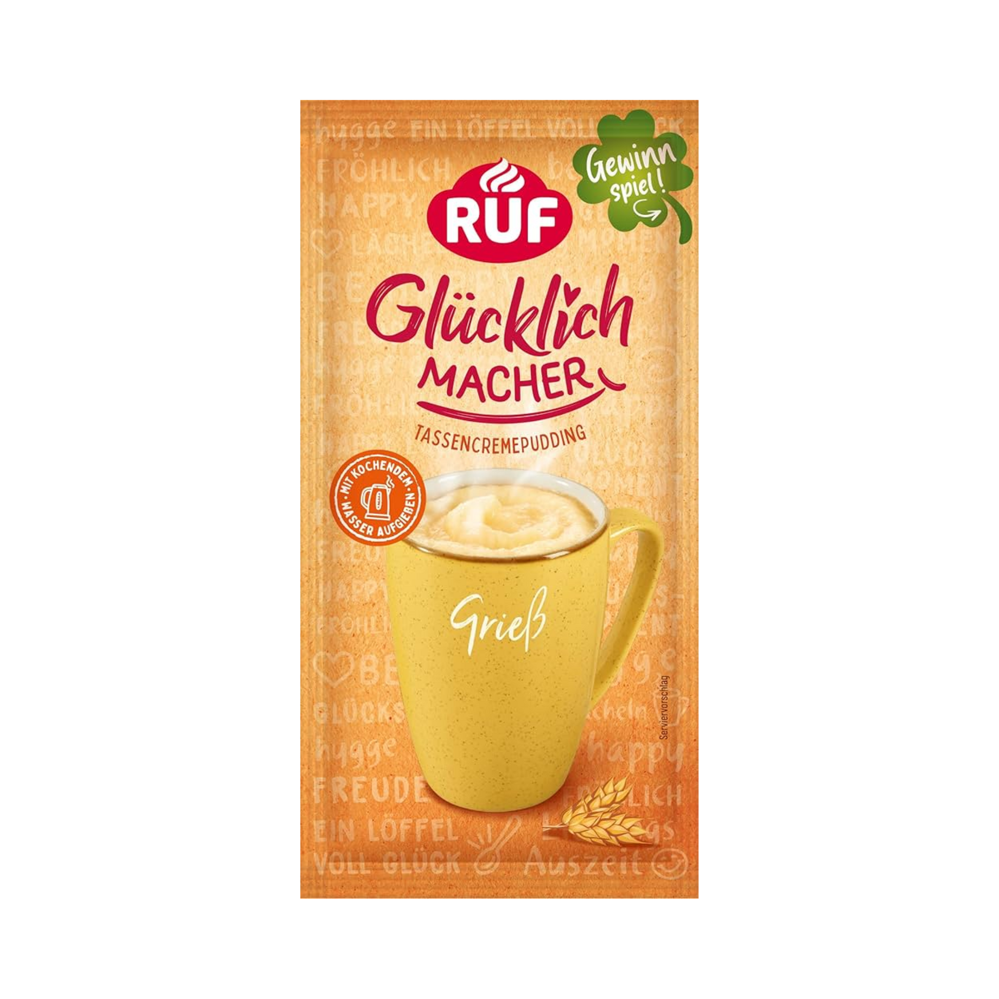 Hartweizengrieẞ, Vollmilchpulver, Zucker, modifizierte Stärke, Maltodextrin, Aroma, Speisesalz, Farbstoff, Schalen, früchten, Senf, Lupinen enthalten